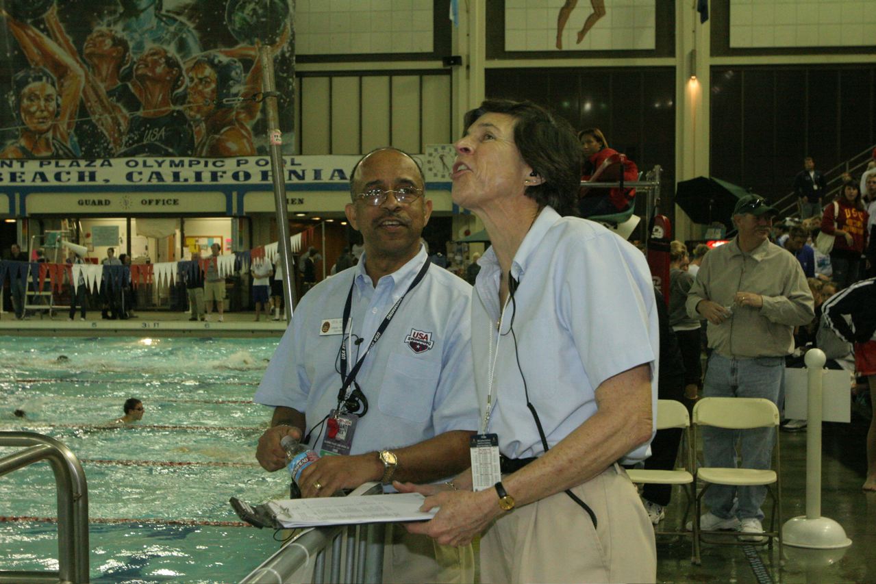 Dr. Gordon: My goal is always to have a quiet confidence on deck. In addition to being knowledgeable, looking neat and dressing sharply are especially important to me. I also try to maintain a constant calm demeanor throughout the race. Sometimes that can be hard. I would like to believe that other officials and athletes see me as a person who demonstrates a rather calm personality whenever I’m officiating. To me it’s critical to have sound judgment and good common sense when making a tough decision. I feel it is difficult to achieve that goal when one loses control of his emotions. Becoming frustrated and yelling at others have never worked for me, neither on deck nor in real life.